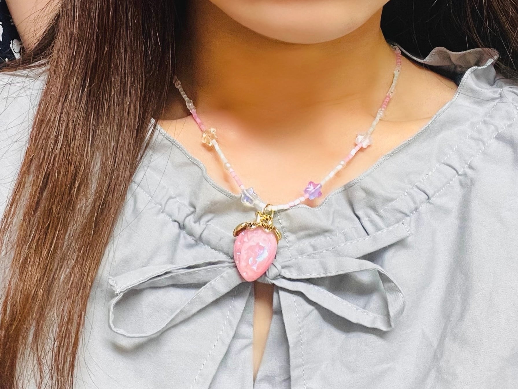 大きめのいちごがコーディネートの主役になりそうなネックレス♩
